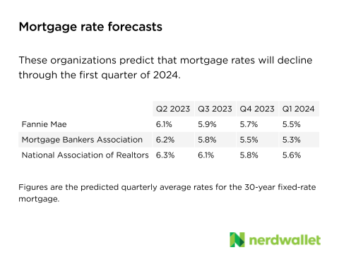 That's the viewpoint of nerds who think about this stuff all day so you don't have to. Specifically, we're talking about economic forecasters for Fannie Mae, the Mortgage Bankers Association and the National Association of Realtors. All three organizations predict that the average rate on the 30-year fixed-rate mortgage will decline for the rest of this year and through the first quarter of 2024.
